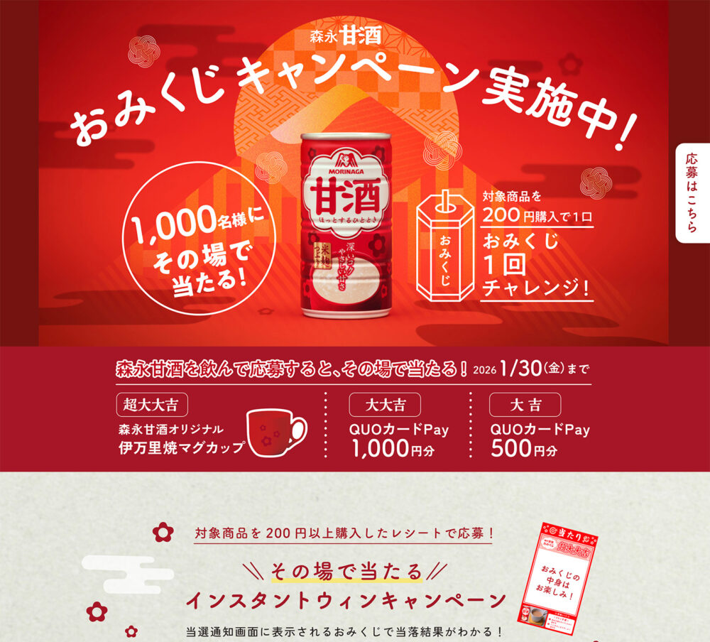 森永甘酒 3つのキャンペーン実施中